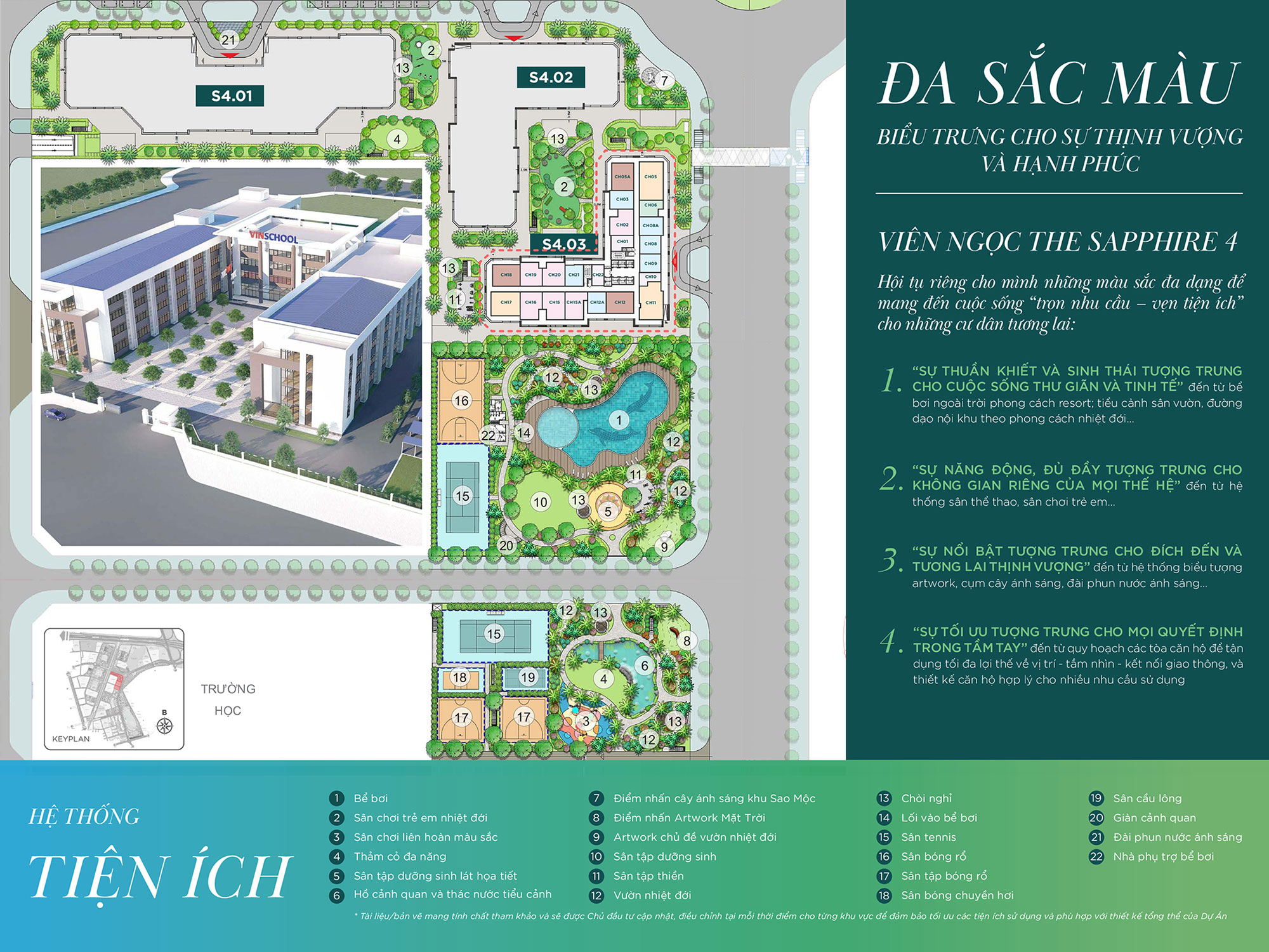 Nằm trong phân khu Sapphire Parkville – nơi giao thoa của 3 tuyến đường nhộn nhịp tại khu đô thị Vinhomes Smart City, tòa S4.03 đem đến cho cộng đồng cư dân những trải nghiệm sống tiện nghi và năng động nhất.